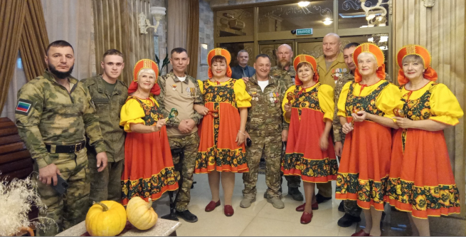 Поздравление бойцов СВО в г. Благовещенске группа ложкарей с песней « Я любила сокола» выступила председатель Общества инвалидов Ивановского округа Глазунова В.Н.